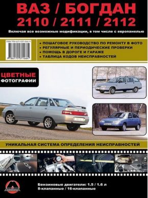 Справочное цветное иллюстрированное руководство по ремонту Bogdan 2110, Bogdan 2111, Bogdan 2112, VAZ 2110, VAZ 2111, VAZ 2112, а также инструкция по техническому обслуживанию и эксплуатации, устройство Богдан 2110, Богдан 2111, Богдан 2112, ВАЗ 2110, ВАЗ 2111, ВАЗ 2111, оборудованных бензиновыми двигателями рабочим объемом 1,5 и 1,6 л., мощностью 69 л. с. В руководстве рассмотрены все известные модификации, включая модель с европанелью.Настоящая книга Золотой серии издательства Монолит станет для вас верным другом и помощников на протяжении всего периода эксплуатации описываемых моделей Богдан и ВАЗ. Пособие будет полезно как в случае гаражного ремонта, так и при возникновении непредвиденной поломки в пути. Уникальная система диагностики неисправностей, представленная во всех книгах Золотой серии, поможет быстро и безошибочно определить причину поломки. Пошаговое руководство по ремонту различных узлов и агрегатов Bogdan 2110, Bogdan 2111, Bogdan 2112, VAZ 2110, VAZ 2111, VAZ 2112 подскажет, как провести ремонт своего автомобиля. Все описываемые действия сопровождаются детальными цветными фотографиями. Кроме того, мануал поможет автолюбителю подобрать любые необходимые запчасти Богдан 2110, Богдан 2111, Богдан 2112, ВАЗ 2110, ВАЗ 2111, ВАЗ 2111. Если же устранить поломку автомобиля самостоятельно не удается, пособие даст Вам уверенность и знания для поездки в автомастерскую. Отдельными главами в книге вынесены инструкция по эксплуатации Богдан 2110 / 2111 /2112, электросхемы и рекомендации по техническому обслуживанию. В книге представлена таблица кодов неисправностей.Мануал рекомендуется все настоящим и будущим владельцам Богдан 2110 / 2111 / 2112, сотрудникам СТО и автомастерских.Мягкий переплет, 206 стр.ISBN: 978-617-537-166-4