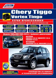 Справочно-информационная книга по ремонту Chery Tiggo, а также инструкция по техническому обслуживанию и эксплуатации автомобилей Чери Тигго с 2012 года выпуска, оборудованных бензиновыми двигателями рабочим объемом 1,6 л. (SQR481F), 1,8 л. (SQR481FC), 2,0 л. (4G63S4M). Мощность 125 / 126 / 132 л. с. Ремонт узлов и агрегатов Чери Тигго. Эксплуатация, техобслуживание, электрические схемы.