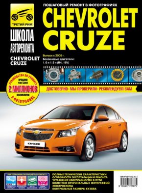 Справочно-информационное издание руководство по эксплуатации Chevrolet Cruze, руководство по техническому обслуживанию и ремонту Chevrolet Cruze, устройство Chevrolet Cruze с 2009 г. выпуска, оборудованных бензиновыми силовыми агрегатами рабочим объемом 1,6 и 1,8 л. (R4, 16V).