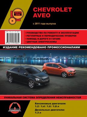 Информационно-справочное иллюстрированное пособие инструкция по ремонту Chevrolet Aveo, а также руководство по эксплуатации и техническому обслуживанию Chevrolet Aveo, устройство Chevrolet Aveo, производства с 2011 года, оборудованных бензиновыми силовыми агрегатами рабочим объемом 1,2, 1,4, 1,6, 1,8 л. и дизелем рабочим объемом 1,3 л. Мощность моторов составляет 70 / 75 / 86 / 95 / 100 / 115 / 136 / 138 л.с. Ремонт Шевроле Авео. Эксплуатация, обслуживание, электросхемы.
