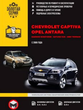 Информационно-справочное пособие Пособие по ремонту Chevrolet Captiva / Opel Antara, а также устройство, руководство по техническому обслуживанию и эксплуатации автомобилей Chevrolet Captiva / Opel Antara с 2006 г. выпуска, оборудованных бензиновыми двигателями рабочим объемом 2,4 и 3,2 л., дизельными двигателями рабочим объемом 2,0 л. Ремонт узлов и агрегатов. Эксплуатация. ТО. Электросхемы Шевроле Каптива.
