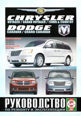 Справочное иллюстрированное издание руководство по ремонту Chrysler Grand Voyager / Chrysler Voyager / Chrysler Town & Country, Dodge Caravan / Dodge Grand Caravan, устройство Chrysler Grand Voyager / Chrysler Voyager / Chrysler Town & Country, Dodge Caravan / Dodge Grand Caravan, руководство по эксплуатации и техническому обслуживанию Chrysler Grand Voyager / Chrysler Voyager / Chrysler Town & Country, Dodge Caravan / Dodge Grand Caravan, которые выпускаются с 2007 года и оборудуются бензиновыми агрегатами рабочим объемом 3,3 (173 л.с.), 3,8 л. (201 л.с.), 4,0 л. (243 л.с.), а также дизелями рабочим объемом 2,8 л. (177 л.с.).
