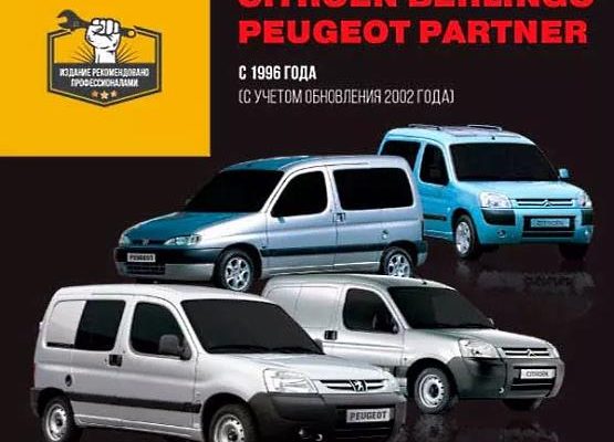 Руководство (мануал) по ремонту и эксплуатации Ситроен Берлинго и Пежо Партнер. В электронной книге рассмотрены автомобили первого поколения с 1996 по 2012 года выпуска.