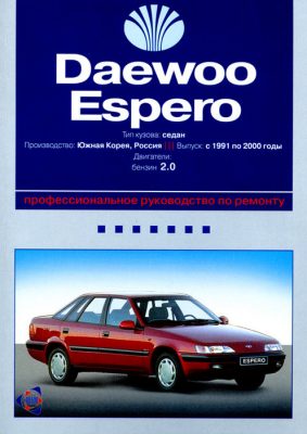 Справочное иллюстрированное издание Пособие по ремонту Daewoo Espero (тип KLEJ), устройство, руководство по эксплуатации и техническому обслуживанию Daewoo Espero в кузове седан, которые выпускались в Гунсане (Корея) и Ростове-на-Дону (Россия) с 1991 по 2000 годы, оборудованных бензиновыми двигателями литражом 2,0 (4-х цилиндровый, 8-ми клапанный, одновальный) и комплектовались 5-ти ступенчатой МКП либо 4-х ступенчатой АКП.