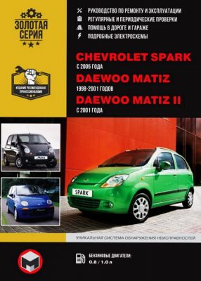 Справочное пособие Руководство по ремонту Daewoo Matiz / Daewoo Matiz II, книга по эксплуатации и техническому обслуживанию, устройство автомобилей Daewoo Matiz / Daewoo Matiz II / Chevrolet Spark и их модификаций, с 1998 и с 2001 г. выпуска, оборудованных бензиновыми двигателями рабочим объемом 0,8, 1,0 л.