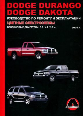 Справочно-информационное иллюстрированное издание Руководство по ремонту Dodge Dakota / Dodge Durango, а также устройство, руководство по эксплуатации и техническому обслуживанию Dodge Dakota / Dodge Durango. Модели выпускаются с 2004 года и оборудуются бензиновыми двигателями рабочим объемом 3,7, 4,7 и 5,7 л.