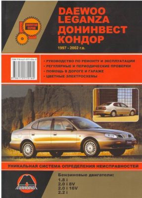 Справочно-информационное подробное иллюстрированное издание Руководство по ремонту Донинвест Кондор, Daewoo Leganza, а также устройство, руководство по эксплуатации и техническому обслуживанию Донинвест Кондор, Daewoo Leganza. Эти модели выпускались с 1997 по 2002 года и оборудовались бензиновыми двигателями рабочим объемом 1,8, 2,0 и 2,2 л.