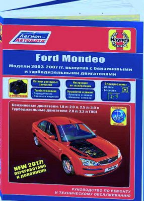 Руководство по ремонту Ford Mondeo, книга по эксплуатации Форд Мондео, пособие по обслуживанию автомобилей Ford Mondeo 2003-2007 г. выпуска, оборудованных бензиновыми 4-цилиндровыми двигателями рабочим объемом 1,8 литра, 2,0 литра, 6-цилиндровыми двигателями рабочим объемом 2,5 и 3,0 литра, а также турбодизельными двигателями объемом 2,0 и 2,2 литра.