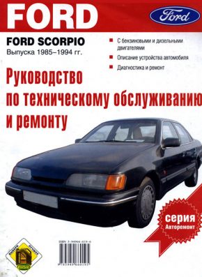 Пособие по ремонту Ford Scorpio, руководство по техническому обслуживанию автомобилей Ford Scorpio 1985-1994 гг. выпуска, оборудованных бензиновыми 4-х цилиндровыми двигателями моделей REC, NEL, NRA, N8D, N9B, 6-ти цилиндровыми моделями ARC, ARD, PRE, BRC, BRD а также дизельными двигателями моделей XD3P / STR, SFA, SCB, с кузовами седан и универсал.