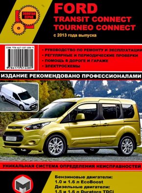 Руководство по ремонту Ford Tourneo Connect, книга по ремонту и техническому обслуживанию, инструкция по эксплуатации Форд Торнео с 2013 г. выпуска, оборудованных как бензиновыми силовыми агрегатами объемом 1.0 и 1.6 литров (Ecoboost), так и дизельными рабочим объемом 1.5 и. 1.6 литров – Duratorg TDCI).