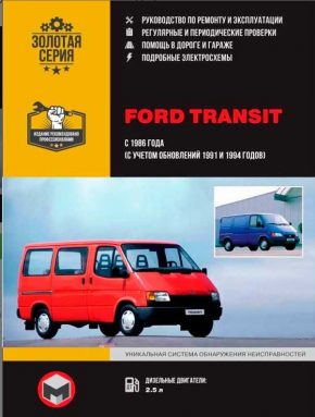 Справочное иллюстрированное издание Книга по ремонту Форд Транзит, устройство Форд Транзит, руководство по эксплуатации и техническому обслуживанию Форд Транзит, которые выпускаются с 1986 года и с учетом обновлений модели в 1991 и 1994 годах, оборудованных дизельными двигателями рабочим объемом 2,5 л.