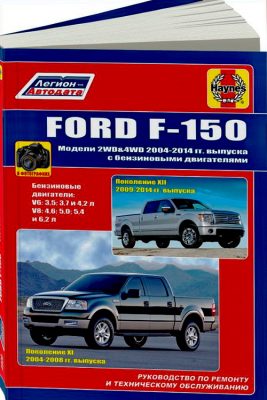Руководство по ремонту Ford F-150, книга по обслуживанию, инструкция по эксплуатации Форд Ф 150 2004-2014 г. выпуска (включая рестайлинговые модели), оборудованные бензиновыми двигателями рабочим объемом 3,5, 3,7, 4,2, 4,6, 5,0, 5,4, 6,2 литра. Ремонт узлов и агрегатов. Устройство, обслуживание, электросхемы.