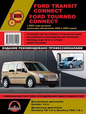 Профессиональная иллюстрированная книга по ремонту Ford Tourneo Connect, инструкция по эксплуатации и техническому обслуживанию, устройство Форд Турнео Коннект с 2003 года выпуска, включая рестайлинговые модели 2006 и 2009 годов. Руководство рассказывает об автомобилях, оборудованных бензиновыми двигателями Duratec рабочим объемом 1.8 л, дизельными двигателями Duratorq TDi и Duratorq TDCi рабочим объемом 1.8 л. Ремонт Форд Торнео. Уникальная система определения неисправностей. Эксплуатация и ТО. Схемы электрооборудования