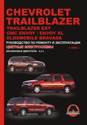 Справочно-информационное с подробными иллюстрациями пособие Руководство по ремонту GMC Envoy / GMC Envoy XL / Chevrolet Trailblazer / TrailBlazer EXT / Oldsmobile Bravada, а также руководство по эксплуатации и техническому обслуживанию леворульных и праворульных автомобилей GMC Envoy / Envoy XL / Chevrolet Trailblazer / TrailBlazer EXT / Oldsmobile Bravada, производственный выпуск которых начат в 2002 году. Внедорожники оборудуются бензиновыми двигателями рабочим объемом 4,2 л.