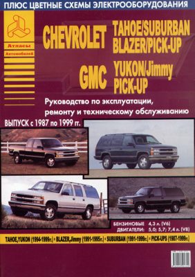 Руководство по ремонту и эксплуатации автомобилей Chevrolet Tahoe / Suburban, Blazer/ Pick-Up, GMC Yukon / Jimmy / Pick-Up выпуска с 1987 по 1999 гг. с бензиновыми двигателями 4,3 л. (V6), 5,0, 5,7, 7,4 л.(V8).