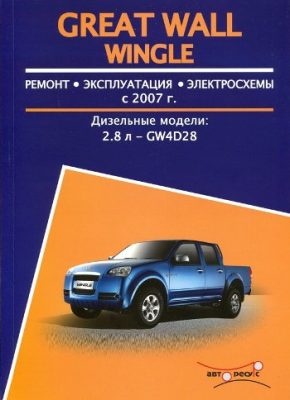 Справочно-информационное издание Руководство по ремонту Great Wall Wingle, а также устройство Great Wall Wingle, руководство по эксплуатации и техобслуживанию всех модификаций автомобилей Great Wall Wingle с 2007 г. выпуска, оборудованных дизельными двигателями рабочим объемом 2,8 л. Ремонт Грейт Вол Вингл. Инструкция по эксплуатации. Схемы электрооборудования.