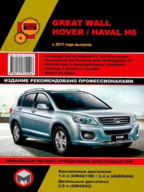 Руководство по ремонту Great Wall Haval H6, книга по обслуживанию, инструкция по эксплуатации Грейт Вол Хавал Н6 с 2011 г. выпуска, оборудованных бензиновыми двигателями GW4G15B, 4G69S4N рабочим объемом 1,5 и 2,4 литра, а также дизельными двигателями GW4D20 объемом 2,0 литра. Ремонт Хавал Н6. Устройство, эксплуатация, ТО, помощь в дороге и гараже. Электрические схемы.