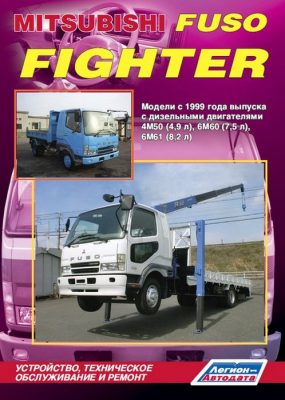 Данные из этого справочного издания позволят самостоятельно проводить грамотное обслуживание транспортного средства и не доводить состояние механизмов грузовика до дорогостоящих и времязатратных ремонтных мероприятий. В тех же случаях, когда вмешательство в структуры механизмов автомобиля неизбежно, руководство станет отличным помощником и посодействует пользователю в скорейшем устранении любых неисправностей во всех составляющих любых агрегатов автомобиля Mitsubisi Fighter. Множество качественно исполненных рисунков с понятными всем комментариями к каждому из них, профессиональное описание любых процедур позволят любому автомобилисту безошибочно подобрать различные варианты замены запчастей Мицубиси Фусо Файтер, осуществить правку кузова этого грузовика, все регулировки, которые необходимы и многое другое.