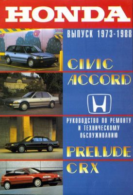 Справочное издание Руководство по ремонту Honda Civic, Accord, CRX, Prelude, а также руководство по эксплуатации и техническому обслуживанию автомобилей Honda Civic, Accord, CRX, Prelude 1973-1988 гг. выпуска.