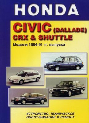 Справочное издание Руководство по ремонту Honda Civic Ballade, CRX & Shuttle, техническому обслуживанию и эксплуатации автомобилей Honda Civic (Ballade), CRX & Shuttle 1984-1991 гг. выпуска оборудованных бензиновыми двигателями рабочим объемом 1,3, 1,5, 1,6 л. Ремонт узлов и агрегатов