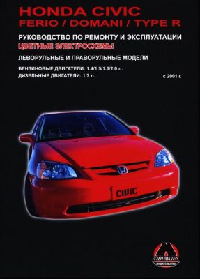 Руководство по ремонту, техобслуживанию и эксплуатации автомобилей Honda Civic / Ferio / Type R с 2001 г. выпуска, оборудованных бензиновыми двигателями рабочим объемом 1,4, 1,5, 1,6, 2,0 л., а также дизельными двигателями объемом 1,7 л. Модели с правым и левым рулем.