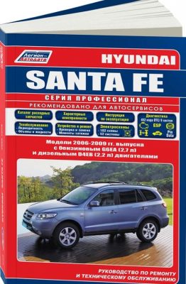 Информация из предложенного авторуководства позволит будущим пользователям книги своими силами проводить грамотное обслуживание своей машины и не доводить состояние ее механизмов и агрегатов до дорогостоящих и энергозатратных ремонтных процедур. Когда же ремонтное вмешательство становится неизбежным, брошюра послужит замечательным средством в поиске и посодействует дальнейшему скорейшему устранению неисправностей сложностей любого уровня во всех компонентах автомобиля Хюндай Санта Фе 2. Большое количество качественных иллюстраций с необходимыми к ним комментариями, наглядное описание любых операций позволят автомобилисту грамотно подойти к подбору запчастей Hyundai Santa Fe 2, провести правку кузова машины, все необходимые регулировки и пр.