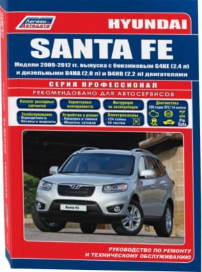 Пособие по ремонту Хендай Санта Фе, инструкция по техническому обслуживанию и эксплуатации, каталог расходных запчастей, устройство автомобилей Hyundai Santa Fe с 2009 по 2012 гг. выпуска. Модели оборудованы бензиновыми двигателями рабочим объемом 2,4 л. (G4KE) и дизельными – рабочим объемом 2,0 л. (D4HA Common Rail) и 2,2 л.(D4HB Common Rail). Ремонт узлов и агрегатов. Устройство автомобиля. Неисправности Хендай Санта Фе. Инструкция по эксплуатации. Каталог расходных запчастей. Электросхемы.