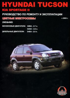 Справочное пособие Руководство по ремонту Kia Sportage и Hyundai Tucson, а также устройство, руководство по техническому обслуживанию и эксплуатации автомобилей Kia Sportage с 2005 и Hyundai Tucson с 2003 г. выпуска, оборудованных бензиновыми двигателями рабочим объемом 2,0, 2,7 л., а также дизельными двигателями рабочим объемом 2,0 л.