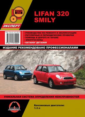 Справочно-информационное иллюстрированное издание руководство по ремонту Lifan Smily (Lifan 320 Smily, Lifan 320), устройство Лифан Смайли, подробное руководство по эксплуатации и техническому обслуживанию Lifan Smily, а также каталог запчастей Лифан Смайли, каталог деталей и сборочных единиц Lifan Smily, которые выпускаются в том числе и на заводе в Черкесске и оборудуются бензиновыми силовыми агрегатами LF479Q1 рабочим объемом 1,3 л. Мощность мотора составляет 89 л.с. Ремонт узлов и агрегатов Лифан Смайли. Эксплуатация. Регулярные и периодические проверки. Помощь в дороге и гараже. Каталог деталей.