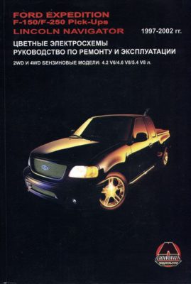 Подробнейшее информационно-справочное издание Руководство по ремонту Lincoln Navigator, руководство по эксплуатации и техническому обслуживанию Lincoln Navigator, устройство Lincoln Navigator 1997-2002 гг. выпуска, оборудованных бензиновыми двигателями рабочим объемом 4,2, 4,6, 5,4 л.