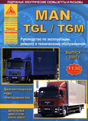 Подробнейшее информационно-справочное иллюстрированное издание инструкция по ремонту MAN TGL / MAN TGM, а также устройство MAN TGL / MAN TGM, руководство по эксплуатации и техническому обслуживанию MAN TGL / MAN TGM. Машины с 2005 г. выпуска. Оборудованы эти грузовые автомобили дизельными силовыми агрегатами D0834 и D0836. Ремонт узлов и агрегатов. Эксплуатация, устройство. обслуживание, схемы электрооборудования.МАН ТГЛ, ТГМ.