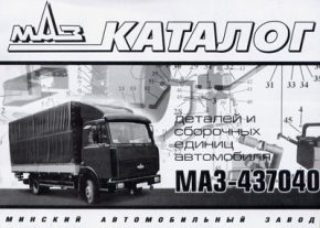 Полный заводской каталог запчастей МАЗ 437040, каталог деталей и сборочных единиц автомобиля МАЗ 437040. Книга содержит развернутую спецификацию (в спецификации приведены номера и наименования узлов и деталей, а также указано количество деталей на подгруппу) узлов и деталей автомобилей МАЗ 437040, сгруппированную по конструктивному и функциональному признаку, рисунки деталей и сборочных единиц автомобиля МАЗ-437040, а также текстовую часть, в которой указаны номера деталей, их наименование и количество на сборочную единицу, в последовательности, указанной в оглавлении.