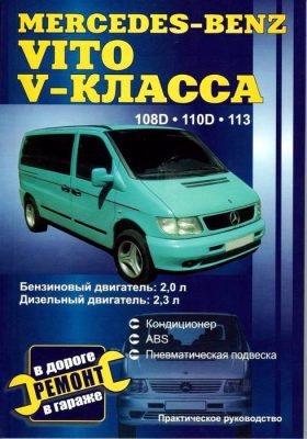 Высококлассное практическое руководство по ремонту Mercedes Vito, V-класс, устройство, инструкция по техническому обслуживанию автомобилей Мерседес Вито, В-класс, оборудованных бензиновыми двигателями рабочим объемом 2,0 л и дизельными двигателями рабочим объемом 2,3 л.