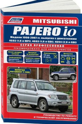 Справочно-информационное издание руководство по ремонту Mitsubishi Pajero IO, а также устройство, руководство по эксплуатации и техническому обслуживанию автомобилей Mitsubishi Pajero IO 1998-2007 гг. выпуска, оборудованных бензиновыми двигателями 4G93 MPI (1,8 л), 4G93 GDI (1,8 л), 4G94 GDI (2,0 л). Ремонт Мицубиси Паджеро ИО. Каталог расходных запчастей. Эксплуатация. ТО. Устройство. Диагностика. Неисправности. Схемы электрических соединений.
