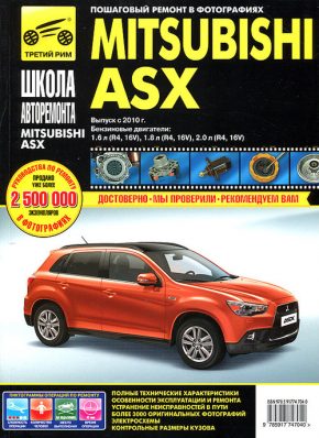 Иллюстрированное справочное пособие Руководство по ремонту Mitsubishi ASX, а также руководство по эксплуатации и техническому обслуживанию Мицубиси АСХ, устройство Мицубиси АСХ с 2010 г. выпуска, оборудованных бензиновыми двигателями рабочим объемом 1,6 (R4, 16V), 1,8 (R4, 16V) и 2,0 л. (R4, 16V).