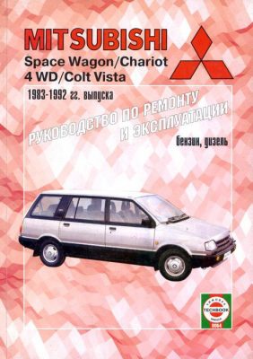 Инструкция по ремонту Мицубиси Чариот, пособие по эксплуатации и техническому обслуживанию автомобилей Mitsubishi Space Wagon / Chariot / 4 WD / Colt Vista 1983-1992 гг. выпуска, оборудованных бензиновыми двигателями 4G37 и дизельными двигателями 4D65 рабочим объемом 1,8 л.