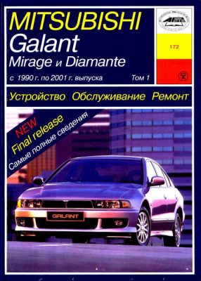 Пособие справочное 2-х томное Руководство по ремонту Mitsubishi Galant, а также руководство по эксплуатации и техническому обслуживанию, устройство автомобилей Mitsubishi Galant, Mirage, Diamante 1990-2001 гг. выпуска, оборудованных бензиновыми двигателями SOHC и DOHC рабочим объемом 1,6, 2,0, 2,4 л.