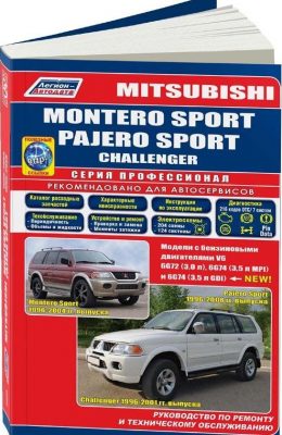 Информационно-справочное пособие по ремонту Mitsubishi Montero Sport / Pajero Sport / Challenger, а также руководство по эксплуатации и техническому обслуживанию автомобилей Mitsubishi Montero Sport / Pajero Sport / Challenger с 1996 г. выпуска, оборудованных бензиновыми двигателями 6G72 рабочим объемом 3,0 л. и 6G74 (MPI и GDI) рабочим объемом 3,5 л. Ремонт Мицубиси Монтеро Спорт. ТО и эксплуатация. Диагностика. Электрические схемы.