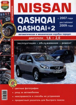 Цветное, в фотографиях, руководство по ремонту Ниссан Кашкай и Ниссан Кашкай +2, а также инструкция по эксплуатации и техническому обслуживанию автомобилей Nissan Qashqai и Nissan Qashqai +2 с 2007 года выпуска, включая рестайлинговые модели с 2009 года. Пособие рассказывает об автомобилях, оборудованных бензиновыми двигателями рабочим объемом 1,6 и 2,0л, автоматическими и механическими коробками переключения передач. Ремонт Ниссан Кашкай. Цветные фото. Описания неисправностей. Инструкция по экслуатации. Электросхемы.