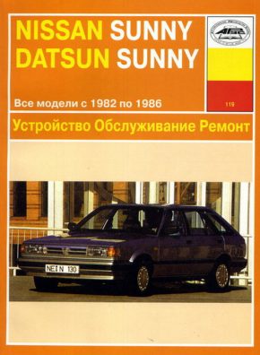 Книга по ремонту Nissan Sunny, а также руководство по эксплуатации, устройству и техническому обслуживанию автомобилей Nissan Sunny, Nissan Sentra, Datsun Sunny 1982-1996 гг. выпуска, серий В11 и N12, оборудованных бензиновыми двигателями OHC рабочим объемом 1,3, 1,5 л., с кузовами Седан, Универсал, Купе, Хэтчбэк, оборудованных 4-ступенчатой и 5-ступенчатой РКПП.
