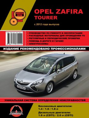 Справочно-информационное руководство по ремонту Opel Zafira Tourer, а также инструкция по эксплуатации и техническому обслуживанию автомобилей Опель Зафира Турер с 2012 года выпуска. Данные автомобили оснащены бензиновыми двигателями рабочим объемом 1,4 л., 1,6 л., 1,8 л., а также дизельными двигателями рабочим объемом 1,6 л. (CDTI) и 2,0 л. (CDTI) . Ремонт узлов и агрегатов. Эксплуатация, техобслуживание, электрические схемы.