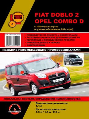 Информационно-справочное пособие по ремонту Opel Combo D / Fiat Doblo 2, а также инструкция по эксплуатации и техническому обслуживанию автомобилей Опель Комбо Д / Фиат Добло 2 с 2009 года выпуска (плюс рестайлинг 2014 года), оборудованных бензиновыми двигателями рабочим объемом 1,4 л., дизельными двигателями – 1,3 л., 1,6 л., 2,0 л.