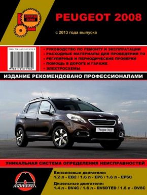 Профессиональная иллюстрированная книга по ремонту Peugeot 2008, а также инструкция по техническому обслуживанию и эксплуатации автомобилей Пежо 2008 с 2013 года выпуска, оборудованных бензиновыми двигателями ЕВ2 (1,2 л.), ЕР6 / ЕР6С (1,6 л.), а также дизельными двигателями DV4C (1,4 л.), DV6DTED/ DV6C (1,6 л.). Мощность: 68 / 82 / 92 / 115 / 120 / 155 л. с. Ремонт Пежо 2008. Устройство. Эксплуатация. Помощь в дороге и гараже. Техобслуживание. Электрические схемы.