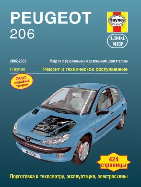 Иллюстрированное справочно-информационное издание Руководство по ремонту Peugeot 206, а также руководство по эксплуатации и техническому обслуживанию автомобилей Peugeot 206 2002-2006 гг. выпуска, оборудованных бензиновыми двигателями рабочим объемом 1,1 л. (1124 см3), 1,4 л. (1360 см3, 8- и 16-клапанные), 1,6 л. (1587 см3, 8-клапанный) и 2,0 л. (1977 см3), а также дизельными двигателями с турбонаддувом рабочим объемом 1,4 л. (1398 см3) и 2,0 л. (1997 см3) НDi.