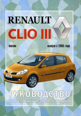 Справочное пособие автомобилиста Руководство по ремонту Renault Clio III, руководство по эксплуатации и техническому обслуживанию, устройство Renault Clio III с 2005 г. выпуска, оборудованных бензиновыми двигателями рабочим объемом 1,15, 1,4, 1,6 и 2,0 л.