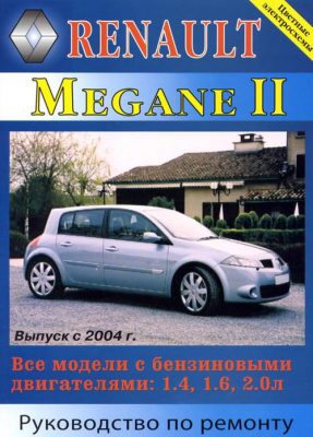 Руководство по эксплуатации, обслуживанию и ремонту узлов, систем и агрегатов автомобилей Renault Megane второго поколения, с 2004 г. выпуска, оборудованных бензиновыми двигателями рабочим объемом 1,4, 1,6, 2,0 л. Ремонт узлов и агрегатов Рено Меган второго поколения. Эксплуатация, техобслуживание, цветные электросхемы.