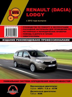 Профессиональное иллюстрированное руководство по ремонту Renault Lodgy / Dacia Lodgy, а также инструкция по техническому обслуживанию и эксплуатации автомобилей Рено Лоджи / Дача Лоджи с 2012 года выпуска. Модели оборудованы бензиновыми двигателями рабочим объемом 1,2 л.(H5Ft), 1,6 л. (K7M), дизельными двигателями рабочим объемом 1,5 л. (K9K). Ремонт Рено Лоджи. Эксплуатация, обслуживание, электрические схемы. Система обнаружения неисправностей.