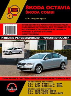 Книга по ремонту Шкода Октавия / Шкода Комби, пособие по техническому обслуживанию и эксплуатации, устройство автомобилей Skoda Octavia / Skoda Combi с 2012 года выпуска. Модели оборудованы бензиновыми двигателями рабочим объемом 1,2 л. (CJZA / CJZB), 1,4 л. (CHPA), 1,8 л. (CJSA / CJSB), 2,0 л. (CHHA) и дизельными двигателями рабочим объемом 1,6 л. (CLHB / CLHA / CRKB), 2,0 л. (CKFB / CKFC / CRVC / CUPA). Подробный пошаговый ремонт Шкода Октавия. Эксплуатация, техническое обслуживание. Помощь в дороге и гараже. Схемы электрооборудования.