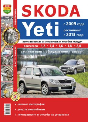 Пособие по ремонту Skoda Yeti, инструкция по эксплуатации, руководство по обслуживанию Шкода Йети с 2009 года выпуска (учитывая рестайлинг 2013 года), оборудованных бензиновыми двигателями объемом 1.2, 1.4, 1.6, 1.8, 2.0 литра.