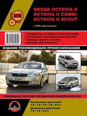 Справочное иллюстрированное руководство по ремонту Шкода Скаут 2, Шкода Октавия 2 Комби, Шкода Октавия 2, а также устройство моделей, руководство по эксплуатации и техническому обслуживанию Skoda Scout 2, Skoda Octavia 2, Skoda Octavia 2 Combi, которые выпускаются с 2008 года, оборудуются бензиновыми двигателями литражом 1,2, 1,4, 1,6, 1,8, 2,0, а также турбодизелями литражом 1,6, 1,9 и 2,0. Тип устанавливаемых моторов: CBZB / CAXA / BZB / CDAA / CDAB / CCZA / CAYA / CAYB / CAYC / BJB / BKC / BXE / BLS / CLCA / CLCB / CFHC / CFHF, мощность агрегатов 55 / 66 / 77 / 81 / 90 / 103 / 112 / 118 / 147 л.с.